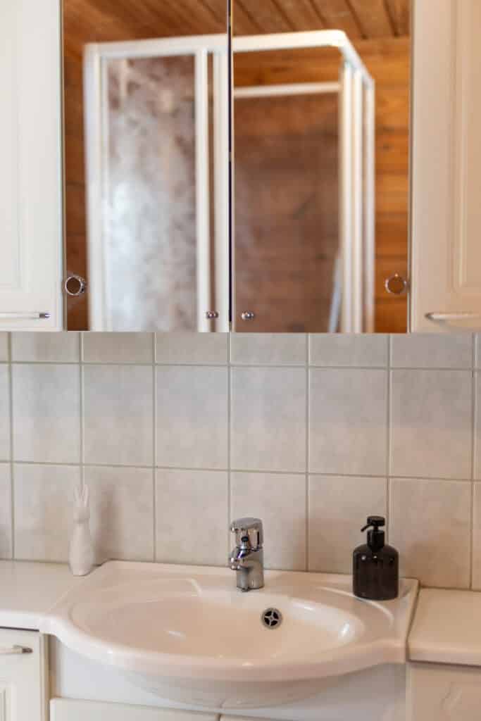 - Suihkukaapissa on korissa shampoot ja pesunesteet