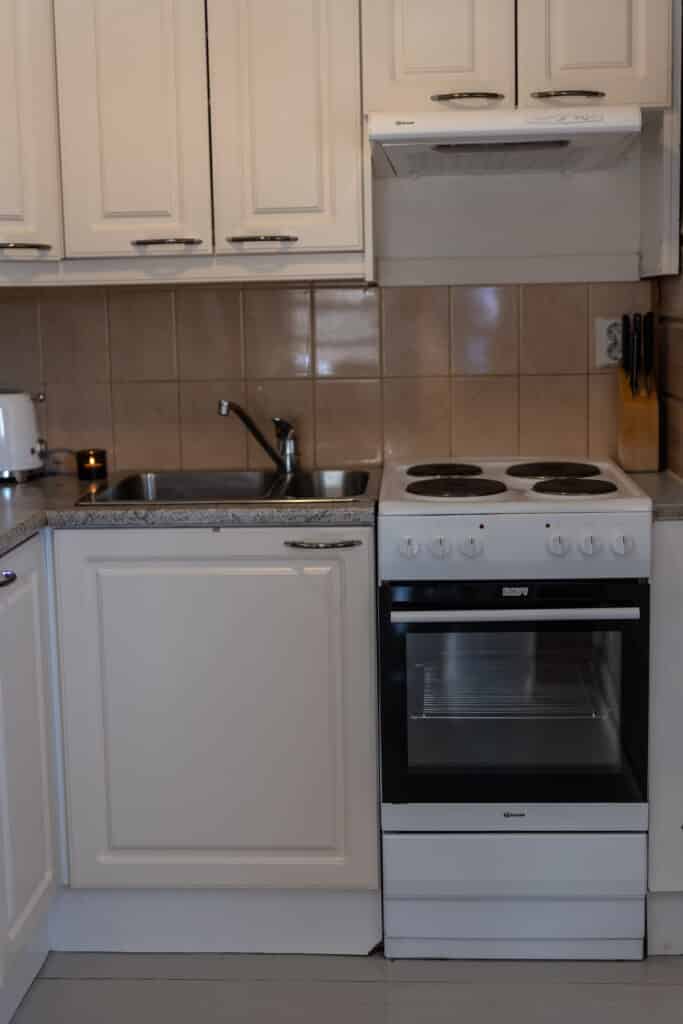 - Lähtiessäsi pesethän astiat. Välineet allaskaapissa, Villa Hennassa tiskikone.